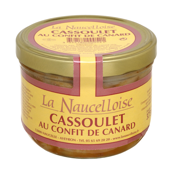Haricots 42%, Manchons de canard* 22%, saucisse de Toulouse 15%, (épaule de porc*, boyaux naturels de porc, sel, poivre), jus cuisiné 15% (poireaux, carottes, céleri, oignons), sel, poivre.
